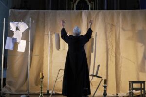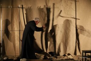 to forma, łącząca wielogodzinne widowisko teatralne w częściach z ascetyczna formą monodramu aktorskiego. To co monumentalne -duchowa droga zostaje opowiedziane ascetyczną formą monodramu aktorskiego.